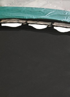 Тип крепления сетки (внутренний) к краю прыжкового полотна, что исключает возможность падения на пружины и раму и дополнительно страхует пользователя.