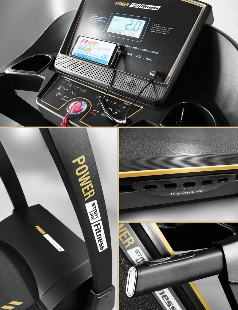 Беговая дорожка Power – мощный тренажер для домашних тренировок. Модель рассчитаны на интенсивную эксплуатацию, ее отличают высокая надежность, передовые технические решения, качество сборки и комплектующих компонентов. Конструкция построена на прочной раме, выдерживающей вес пользователя до 110 кг. Сердце дорожки Power- надежный двигатель мощностью 2.5 л.с. Беговое полотно размером 125 x 45 см обеспечивает полную свободу движений на любых скоростях. Программные профили направлены на решение самого широкого спектра задач – от развития силы и выносливости до снижения веса и улучшения сердечно-сосудистой системы. Все основные параметры выводятся на жидкокристаллический экран: время, скорость, расстояние, подсчет калорий. Легко выставить целевые показатели в соответствии с уровнем физической нагрузки. Система амортизации гасит колебания и является преимуществом для защиты суставов от ударной нагрузки во время тренировки. На панели встроены Mp3, динамики и микрофон, поэтому тренировки можно проводить в полном комфорте. Удобное перемещение тренажера обеспечивают транспортировочные колеса. Приятной опцией является складная конструкция, которая облегчает хранение.