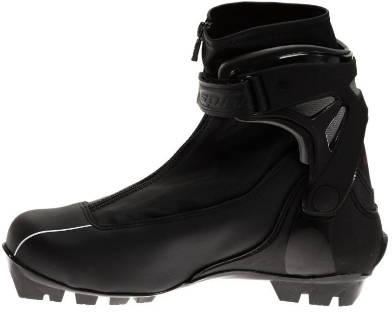 - Жесткая промежуточная стелька (торсионная пластина) исключает скручивание подошвы и улучшает фиксацию ботинка в креплении лыжи, одновременно создает дополнительную реактивную силу при толчке.