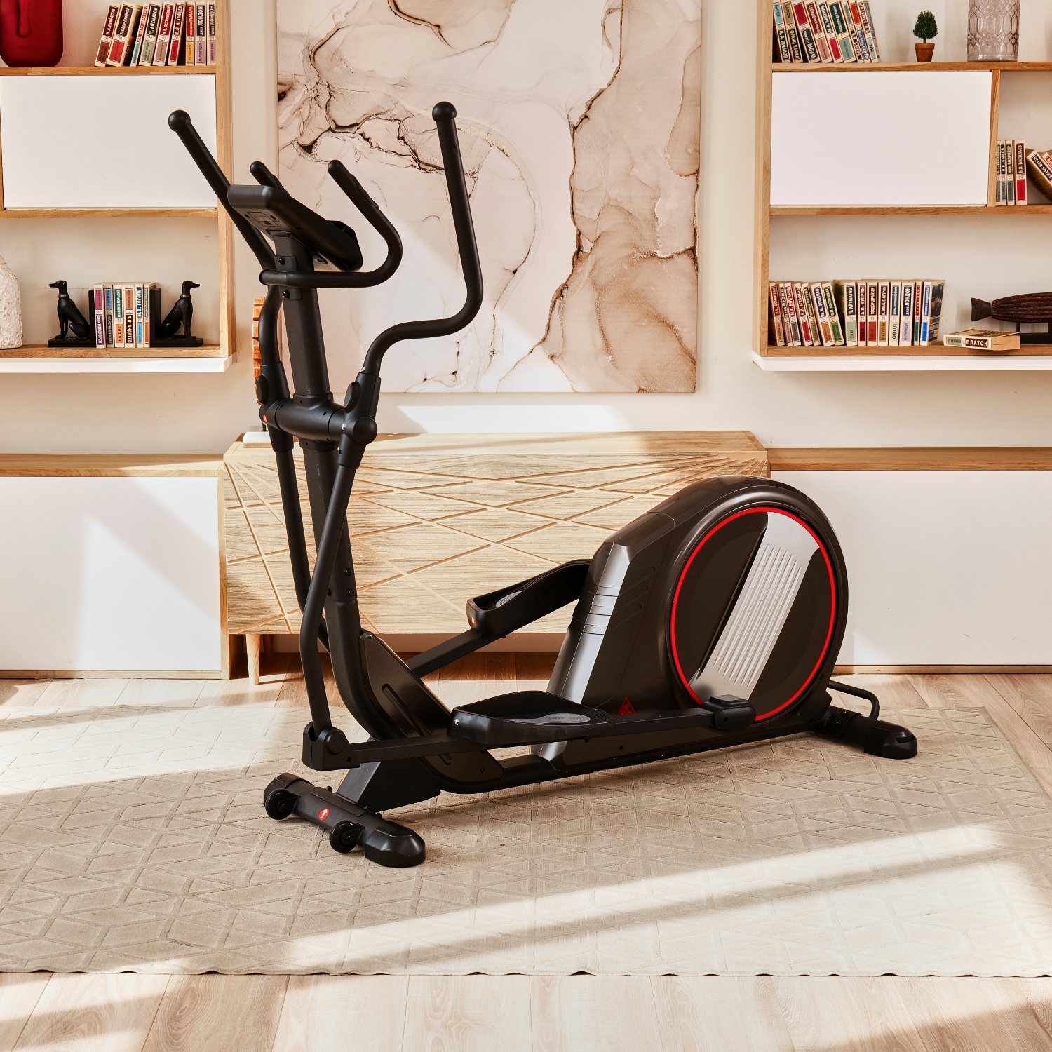 Эллиптический тренажер с задним расположением маховика для домашнего использования. Тренировка на эллиптическом тренажере - это прекрасная альтернатива бегу трусцой или ходьбе, с разницей в высоком сжигании калорий. Благодаря интенсивному движению рук верхние участки тела напрягаются, все тело укрепляется, повышается эффективность тренировки.