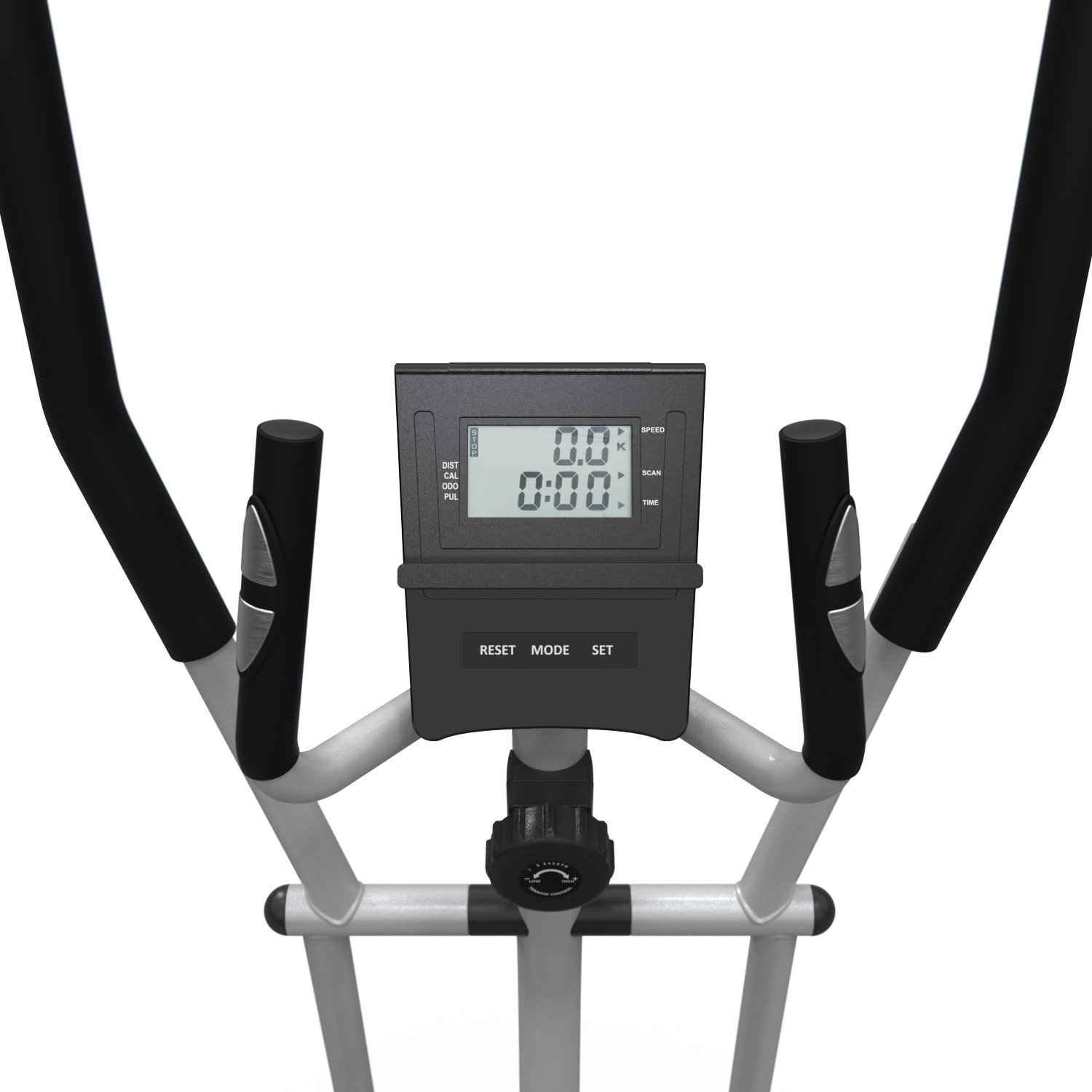 Тренажер оснащен магнитной системой нагрузки с механической регулировкой на 8 уровней, что позволяет подобрать оптимальный уровень интенсивности тренировки. Дисплей с монохромным LCD-экраном отображает такие параметры, как пульс, время тренировки, скорость движения, расстояние и общая дистанция, а также количество потраченных калорий.