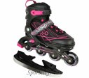 Коньки - ролики раздвижные 2в1 Cosmoride Freerider Duo. Два варианта использования: коньки ледовые/традиционные роликовые коньки (4 PU колеса в 1 ряд). Замена ледового лезвия на роликовую платформу производится с помощью шестигранников. Лезвие из нержавеющей стали имеют заводскую заточку. Коньки-ролики Cosmoride Freerider Duo для легкого и безопасного катания. Удобные мягкие ботинки, изготовленные по новейшей технологии из кожзама в комбинации с нубуком и сетчатым материалом. Хорошая вентиляция внутреннего сапожка и широкая стелька, поддерживают комфортное состояние даже при длительном катании. Нейлоновая оболочка, ТРЕ манжета. Улучшенная боковая поддержка ноги. Надежную фиксацию обеспечивают шнуровка, липучка, внешняя застёжка и пяточный ремень. Прочная алюминиевая рама.