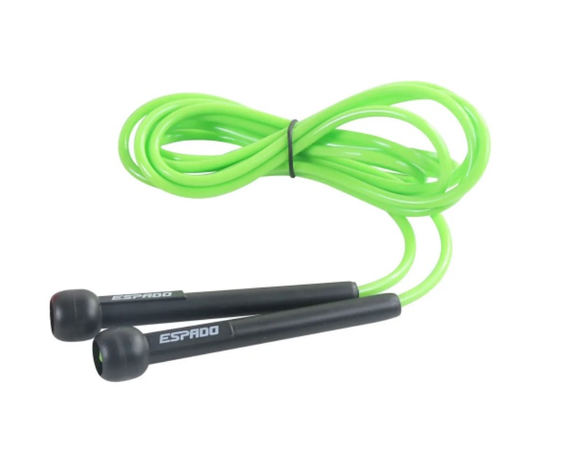 Скакалка Espado регулируется по длине. Легкие пластиковые ручки удобны в использовании. Скакалка сделана из высококачественных современных материалов, имеет яркий дизайн.
