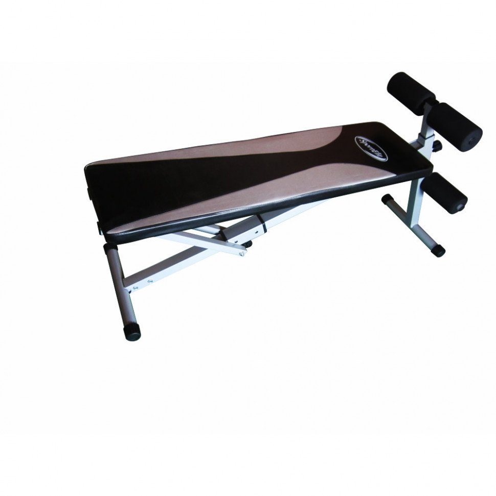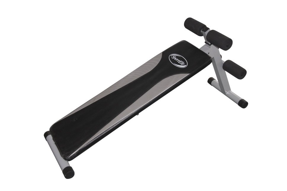 Cкамья прямая с отрицательным углом наклона относится к универсальным тренажерам, так как может использоваться для тренировки мышц пресса под наклоном или как горизонтальная поверхность для упражнений с гантелями. Занимаясь на этом тренажере можно выполнять подъем ног или туловища, работать с мышцами пресса, делать различные разводки с гантелями, тренировать длинные мышцы спины. Опорные ножки тренажера регулируются, позволяя легко настраивать тренажер под конкретного пользователя. Эргономичные валики для ног делают тренировку комфортной, полностью избавляя пользователя от дискомфорта, предотвращают появление синяков и ушибов. Простая, но эффективная конструкция позволяет складывать тренажер, делая его удобным для хранения.