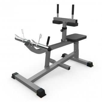 Тренажёр DFC D100866 предназначен для развития икроножных мышц. Перед началом занятий снимите перекладину с весами при помощи ручки справа. Отталкиваясь стопами и держась за поручни, приподнимайте колени, не отрывая стопы от платформ.