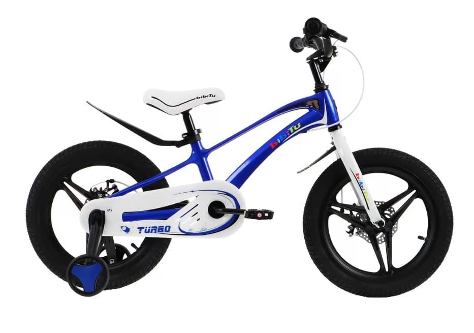 Велосипед Bibitu Turbo подойдёт для юных водителей, которые только начинают осваивать двухколёсный транспорт. Модель оснащена съёмными боковыми колесами, которые помогут ребёнку научиться кататься на велосипеде. Особенности Прочная рама из магниевого сплава выдержит все препятствия на своём пути. Громкий и задорный звонок будет радовать ребёнка и предупреждать пешеходов о появлении велосипедиста на дороге. Дисковые механические тормоза обеспечат безопасное и эффективное торможение. Защита цепи предотвратит попадание одежды в механизм. Заднее и переднее крыло уберегут от грязи и брызг в дождливую погоду.
