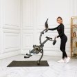 Для удобства пользователя велотренажер оснащен регулируемым по высоте сиденьем (5 уровней), передней опорной стойкой с 2 подвижными колесами для удобства транспортировки, педалями с регулируемыми ремешками и компенсаторами неровности пола. Велосипед удобно складывается и экономит место, а также имеет подставку под планшет.