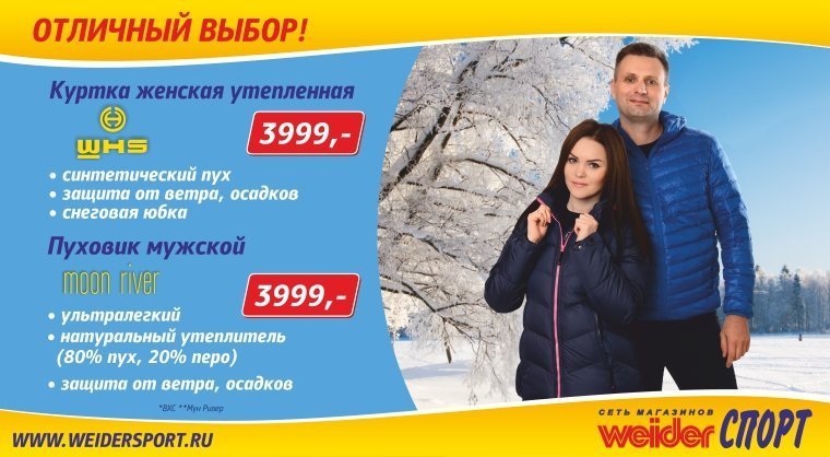 Сеть спортивных магазинов «Weider СПОРТ» представляет утепленную женскую куртку (WHS) и ультралегкий мужской пуховик (Moon River) для поздней осени и зимы.